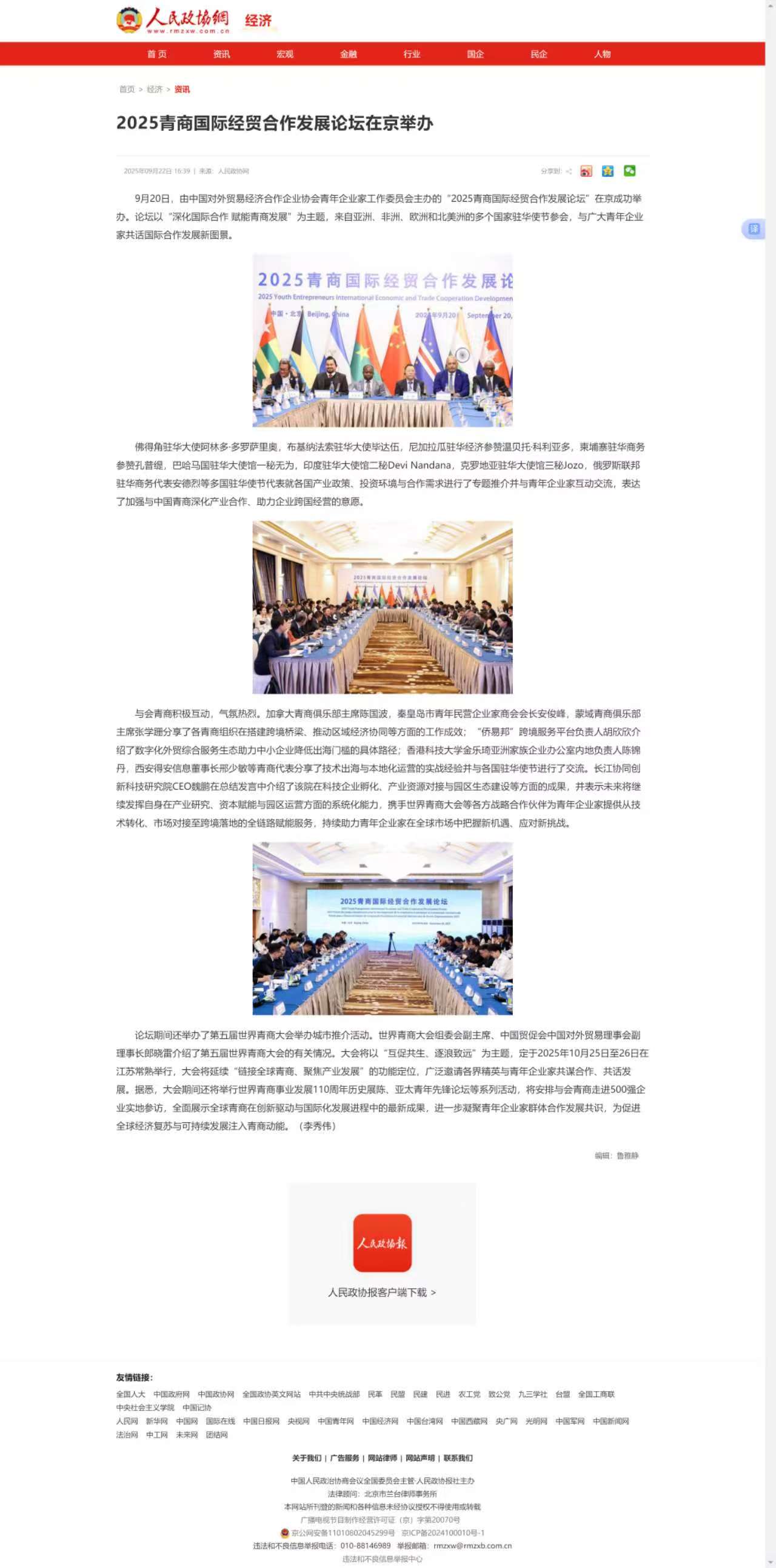 人民政协网:2025青商国际经贸合作发展论坛在京举办
