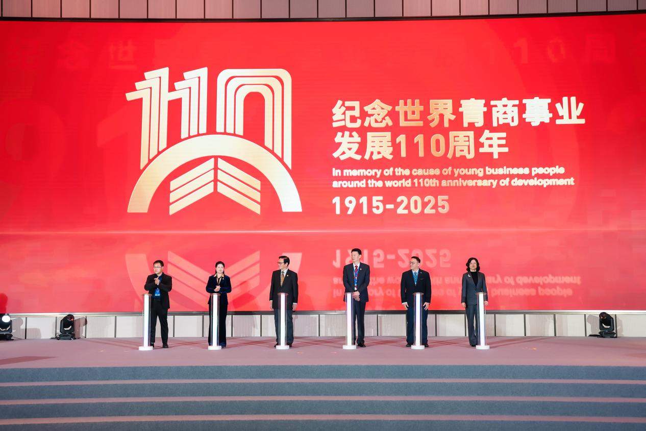2025年是世界青商事业发展110周年,与会嘉宾观看了世界青商事业发展110周年纪念短片并发布了纪念标识,共同见证了国际青商运动和世界青商事业自1915年以来的发展历程。